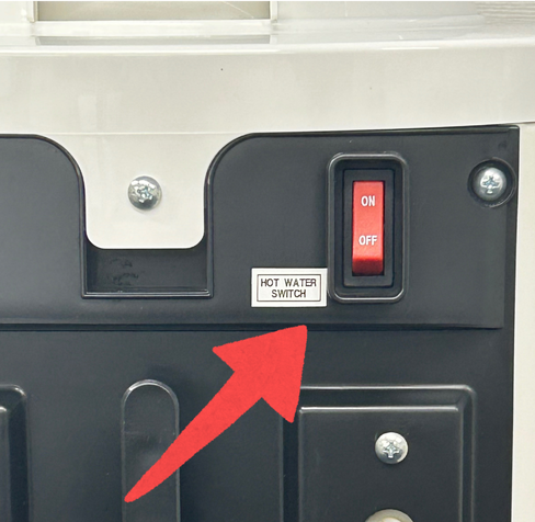 注水を確認後、温水スイッチ(背面)をONにします。約40分後に冷水・温水ともに適温になります。